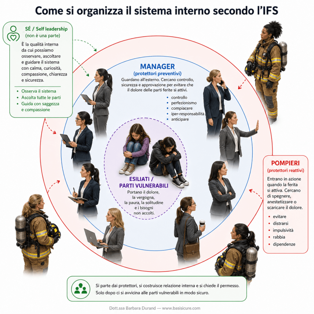 Dentro di noi ci sono parti che lavorano per evitare che accada qualcosa di doloroso. Sono parti preventive, organizzative, spesso molto efficienti. A volte talmente efficienti che il mondo le applaude mentre noi, dentro, siamo esausti.